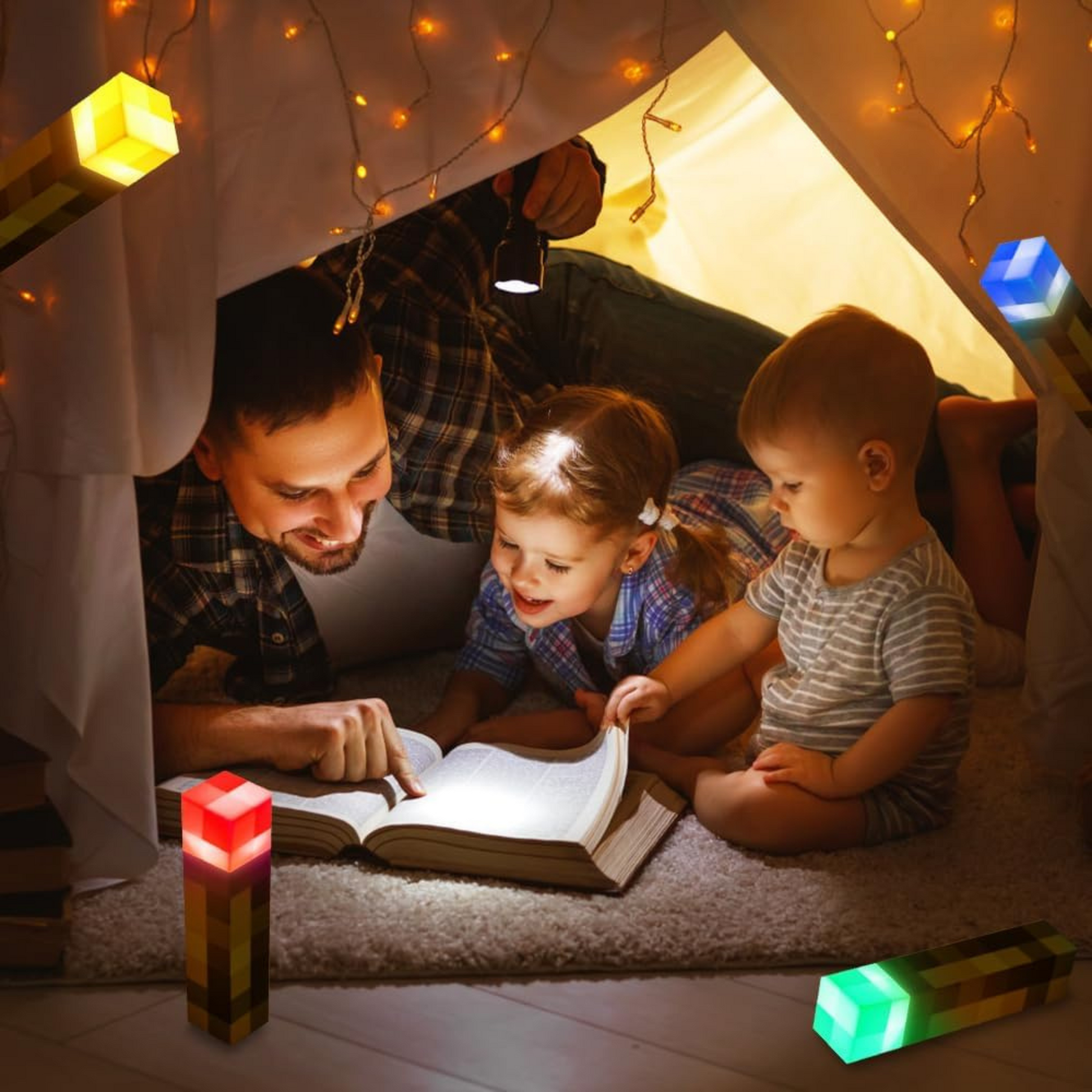 Elige el color de tu antorcha: cuatro colores distintos que transforman tu espacio y reflejan cómo te sientes, desde la energía del rojo hasta la calma del azul, pasando por la alegría del amarillo y la frescura del verde.